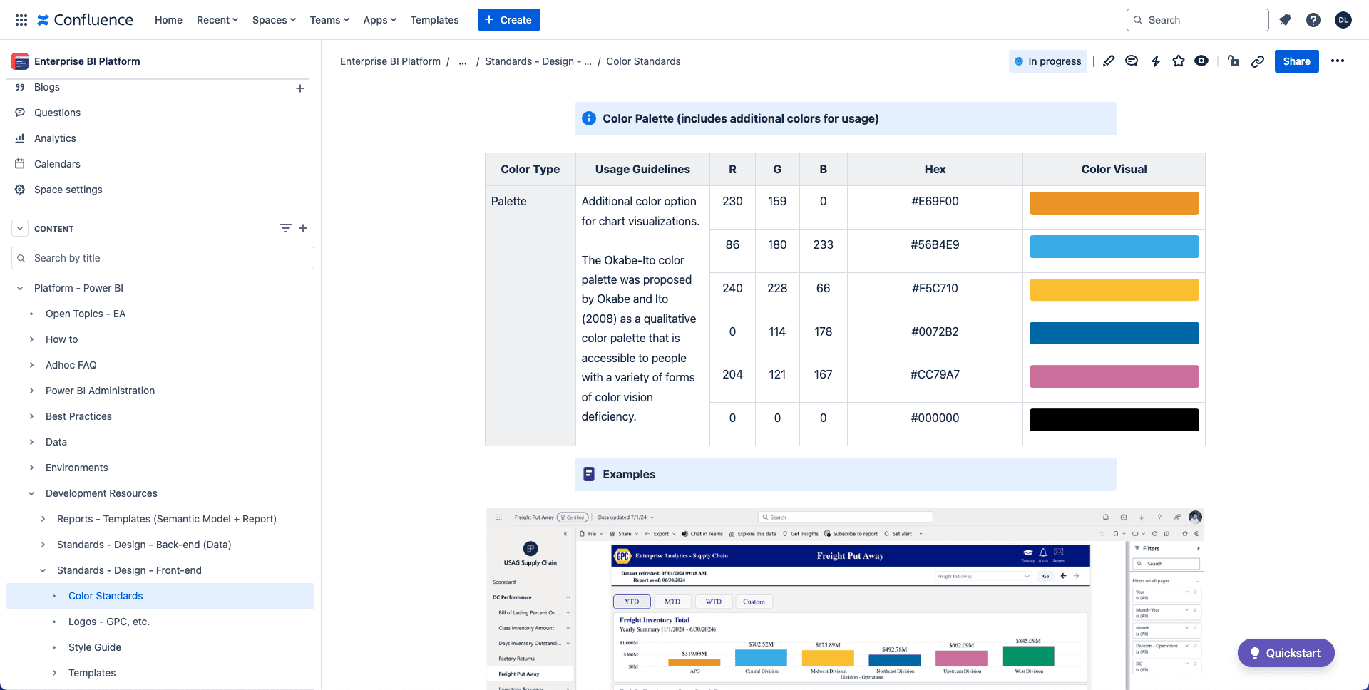 I worked with the Lead Power BI Developer to create documentation, style guides, and examples based on data visualization best practices. We incorporated insights from books and courses, including the Okabe-Ito color palette, to make reports more accessible for users with color vision deficiencies.